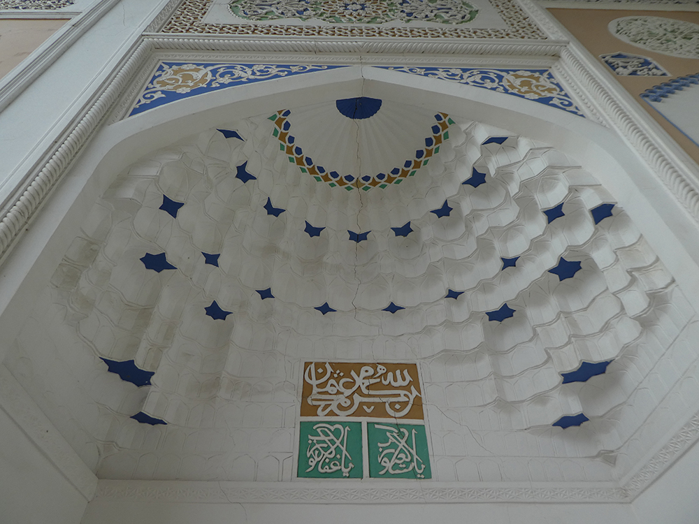 사마르칸트 모스크의 건축물은 규모는 작아도 이슬람 건축 전통의 요소들을 간직하고 있다. ‘카나카(khanaka)’ – 내부 미흐랍이 있는 정사각형, 때로는 직사각형의 전제가 모스크의 핵심이다.