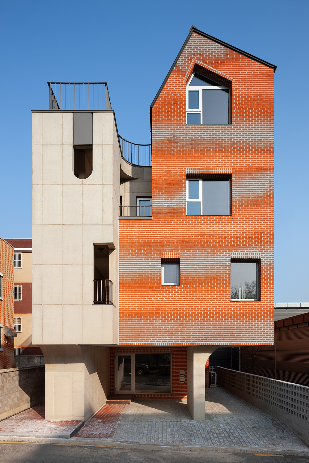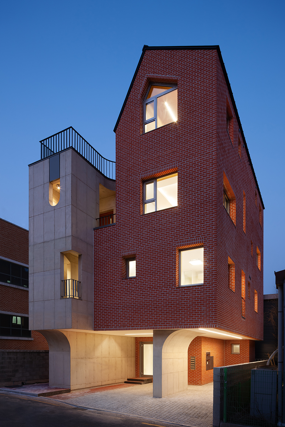 On Hue Architect | Lee, Hyunseung _ Realspace Architects Client | Lee, Sungsu / Kim, Jongsuk Supervisor | Heo, Jinsung _ Nanduru Architects Construction | ChaeHeon Architecture Location | 31, Daecheong-ro 36beon-gil, Gijang-eup, Gijang-gun, Busan, Korea Program | Single family house, Neighborhood living facilities Site area | 148.80㎡ Building area | 89.20㎡ Gross floor area | 257.95㎡ Building to land ratio | 59.95% Floor area ratio | 173.35% Building scope | 4F Structure | RC Exterior finishing | Brick, Exposed concrete Interior finishing | Single family house : Wall - Painting / Floor - Wood floor / Ceiling - Painting & Birch Veneer Neighborhood living facilities(office) Wall&Ceiling - Exposed Concrete / Floor - Terazzo Tile Design period | Nov. 2019 - Mar. 2021 Construction period | Apr. 2021 - Mar. 2023 Photograph | Park, Young-Chae / Realspace Architects Structural engineer | Seum Structural Engineering Mechanical engineer | Minsung Engineering Electrical engineer | Hyeob-in Engineering |