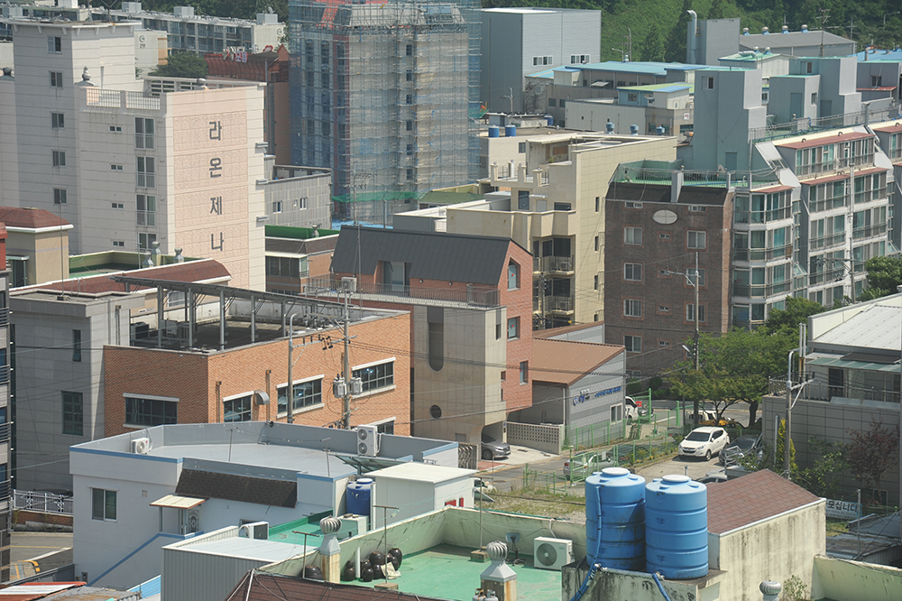 대지는 부산시 기장읍 대라리에서도 주거지역과 자연녹지지역이 만나는 경계 부근에 위치한다. 부산 중심지에서는 꽤 떨어진 곳이지만, 반대로 기장군 전역으로 보면 부산 도심으로 나가기 용이한 위치적 장점 때문에 많은 공장과 창고들이 주거지역과 한데 어우러져 형성되었다. 하지만 동해남부선 기장역이 개통되어 일대의 대중교통 환경이 개선되며 거주성이 높아지고, 토지가격 상승 등의 이유로 최근 많은 공장과 창고들이 철거되면서 다가구, 다세대 주택과 이에 따른 근린생활시설 등이 속속들이 생겨나고 있다. 이러한 도시의 맥락을 충분히 감안해 작은 규모의 건물이지만 공장과 창고를 대체하는 주거 친화적 분위기의 건축물을 계획하고자 했다.