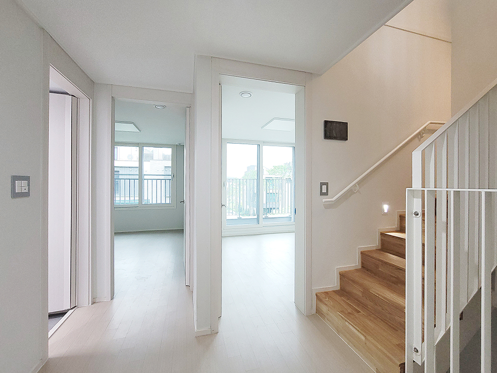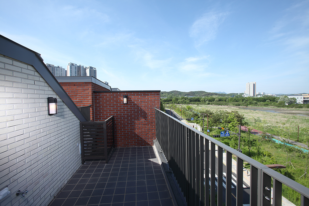 Each unit is vertically structured, with the first floor planned as piloti spaces, excluding the entrance, allowing for diverse living spaces such as camping areas, exercise spaces, and traditional porches based on residents’ preferences. Residents can cultivate small gardens and vegetable patches in their private gardens. The kitchens and bedrooms on the second and third floors allow families to enjoy time together without worrying about noise between floors. The attic can be customized for hobbies or a study, and the terrace offers a great view of Songsan’s natural scenery for emotional camping experiences.