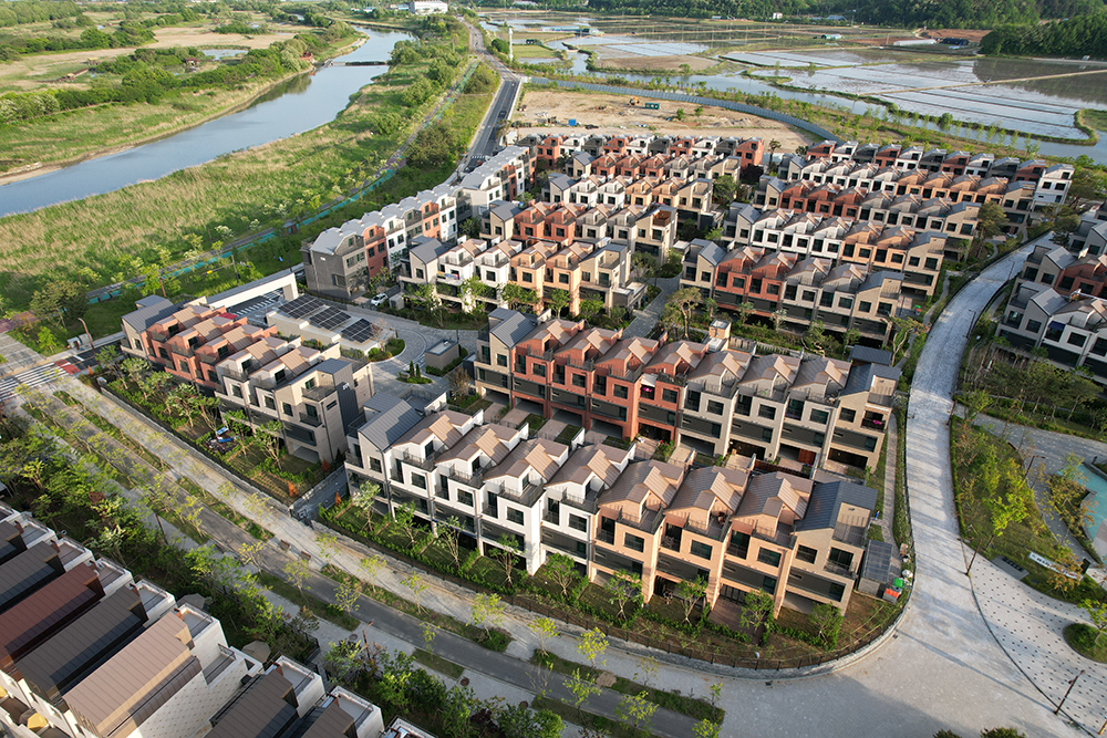 Each unit features an independent piloti space and a rooftop-attached attic and terrace, providing a vertical sense of space and rhythm that harmonizes with the surrounding context. The use of vertical lines creates a sense of mass, and the varied shapes of the attics and diverse brick colors ensure that each unit stands out individually. Emphasized colors and natural material finishes harmonize with the surrounding environment.