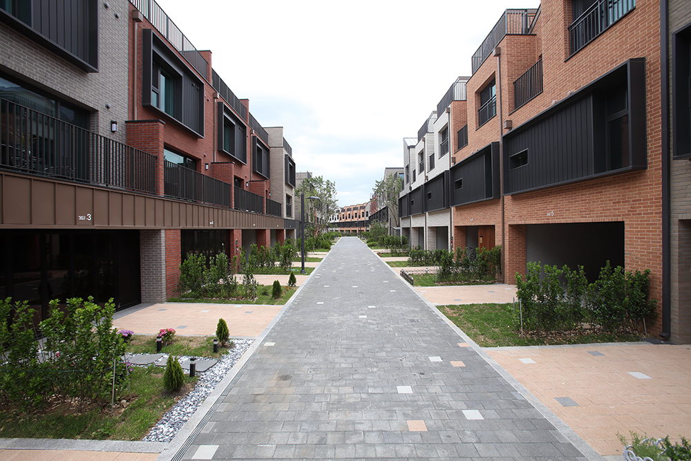 Each unit features an independent piloti space and a rooftop-attached attic and terrace, providing a vertical sense of space and rhythm that harmonizes with the surrounding context. The use of vertical lines creates a sense of mass, and the varied shapes of the attics and diverse brick colors ensure that each unit stands out individually. Emphasized colors and natural material finishes harmonize with the surrounding environment.