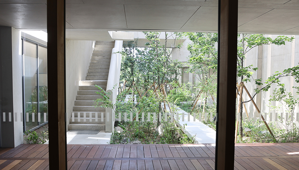 This building is stretched out along a steep hill, acting like a small gate between everyday life and the extraordinary. Inside, a garden was created to provide a sense of tranquility, and it was designed to harmonize with the nearby Mauro Hall, built in 1958. Together, these two buildings form a center with a 70-year history. Positioned on the boundary, this architectural work exudes a noble and dignified presence.