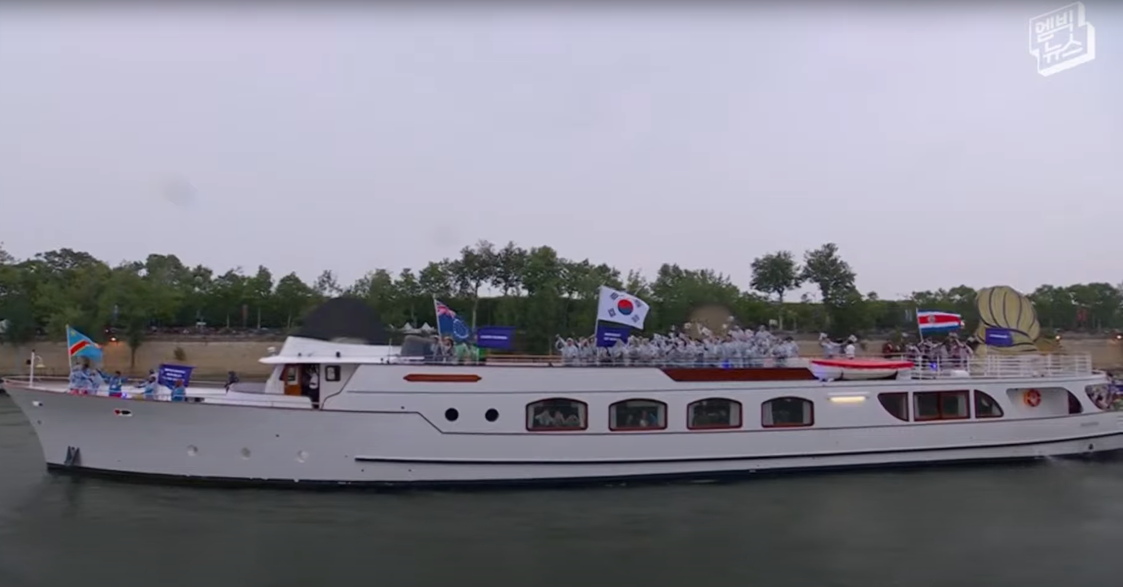 또 다른 문제는 입장하는 나라마다 선수단의 규모가 다른 데에서 발생한다. 미국이나 개최국 프랑스처럼 대규모 선수단은 커다란 배를 타고 이동한다.<사진 2> 반면에 한국처럼 중간 규모나 소수가 참여한 나라는 한 배를 나누어서 타고 입장한다.<사진 3> 그러다 보면 어떤 나라 선수단은 배의 선수에 자리 잡고 어떤 나라 선수단은 선미에 자리 잡는다. 선수나 선미는 배의 중앙보다 위치가 낮다. 그렇게 작은 규모의 선수단은 왠지 초라해 보인다. 스타디움에서 입장을 하면 선수단의 규모가 크든 적든 그들이 밟는 땅, 즉 트랙은 모두에게 평등하다. 하지만 배로 입장을 하게 되면 그들이 밟은 땅, 정확히 말해 그들이 탄 배는 차별이 생길 수밖에 없다. 누구는 캐딜락 리무진을 타고 등장하는데, 누구는 미니를 타고 등장하는 것이다. 이번 올림픽의 주요 메시지 중 하나는 평등이다. 하지만 이렇게 배라는 이동 수단으로 입장하는 바람에 차별이 노골적으로 전시되었다.