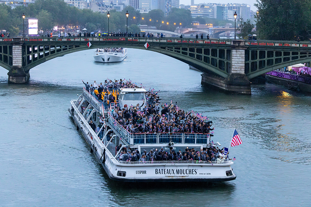 각국 선수단이 센강을 따라 배를 타고 등장하는 형식은 사열식 입장의 지루함을 회피하려는 주최 측에게 몇 가지 장점을 가져다준다. 첫째는 센강과 그 주변의 관광자원을 전 세계에 홍보할 수 있다. 둘째는 각 선수단이 탄 배의 속도를 조절함으로써 중간중간에 쇼를 보여줄 수 있다. 이로써 끊임없는 선수단 입장이라는 기계적 반복성을 극복할 수 있게 되었다. 바로 이 점이 정작 올림픽 개막식의 본질을 흐려버린 것이다. 당당하게 입장해야 할 선수들이 배의 갑판 위에 얌전하게 서 있자 마치 센강을 유람하러 온 관광객을 보는 것 같다. 게다가 다른 나라 관객에게는 심심해 보일지 모르지만 자국에서만큼은 자랑스러운 기수는 그 역할이 증발되고 말았다. 그저 국기를 들고 서 있을 뿐이다. TV를 시청하는 전 세계 관객에게 선수단보다 배와 센강, 그리고 파리가 자랑하는 다리와 주변 건물이 보일 뿐이다. 완벽한 파리 관광 영상이 되었고, 선수들은 들러리로 전락했다.