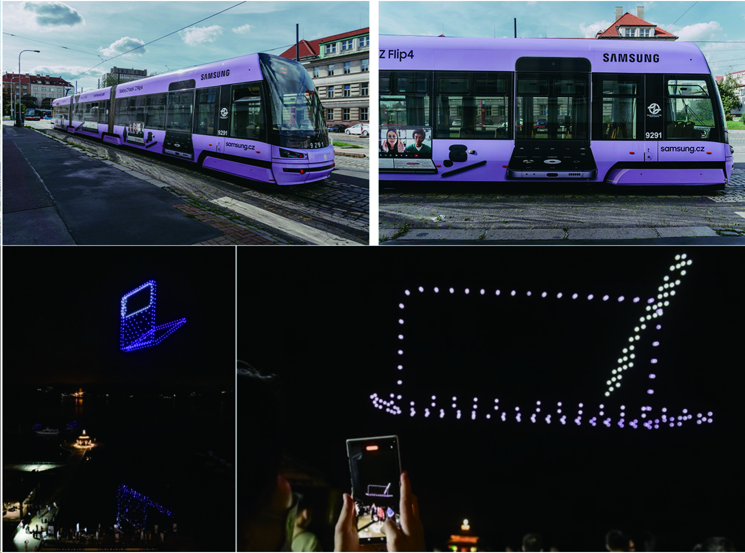 또, 체코의 프라하에서는 갤럭시 Z 플립4의 상징색 중 하나를 나타내는 보라색 트램을 운행했고, 대만에서는 밝은 조명을 밝힌 500대의 드론으로 대만 최대의 담수호인 르웨탄 호수의 하늘을 수놓았다.