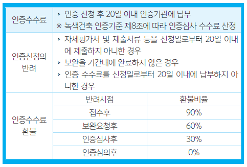 인증심사는 신청서류 접수일로부터 40일 이내에 처리하여야 하나, 부득이한 경우, 건축주에게 사유 통보 후 1회에 한 해 20일 연장이 가능하다. 단, 30세대 미만의 단독주택인 경우에는 20일 이내에 처리하여야 한다.
