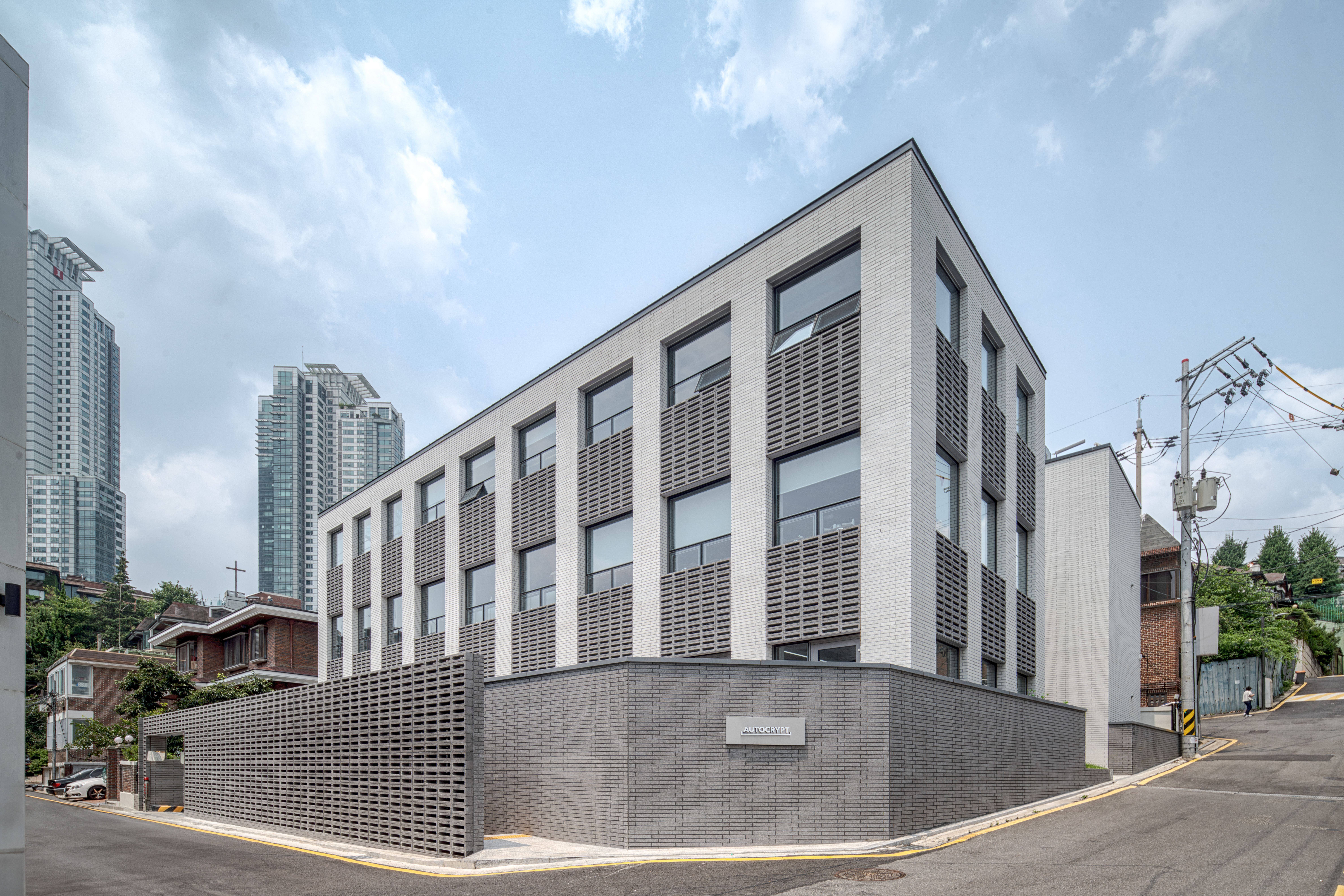 The site is located within a residential area in Samseong-dong, surrounded by buildings made of red brick. The design began with the intention of harmonizing a new research center for a company with the existing red brick buildings in the neighborhood, blending in without disrupting the overall atmosphere.