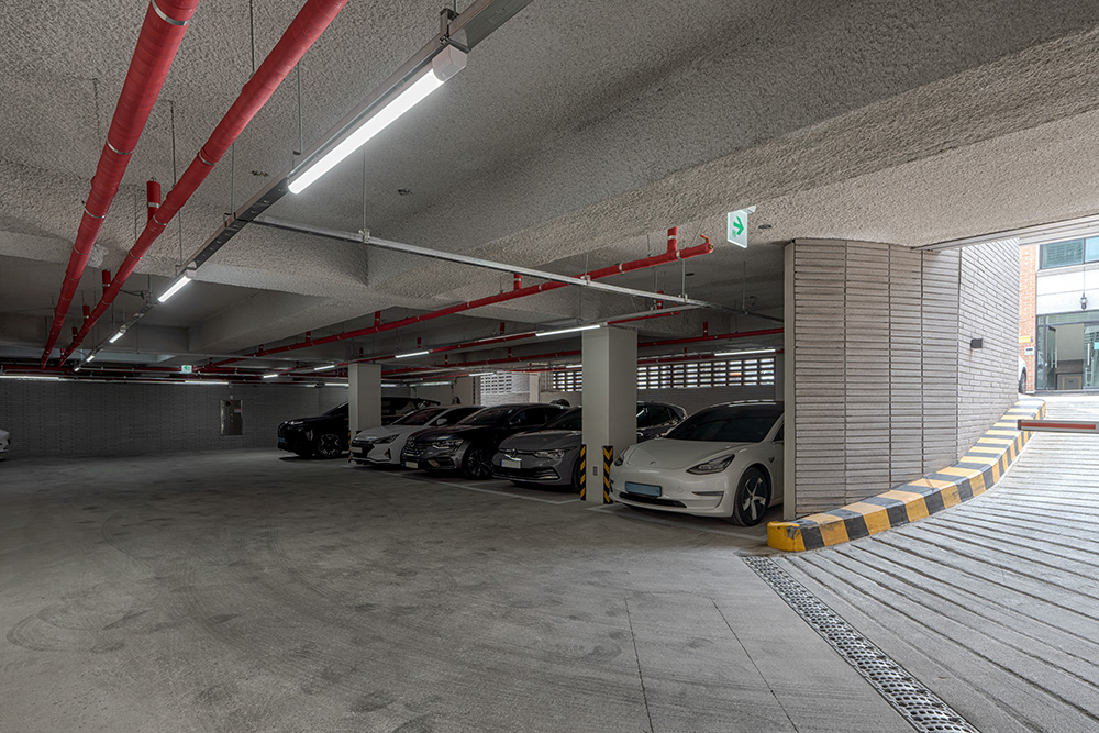 계획된 건물은 총 지하 2층, 지상 2층의 규모로, 그중 지하 2개 층을 모두 주차장으로 사용한다. 건물로 진입하는 주도로에서 자연스럽게 기단부를 따라가면 지하 1층 주차장으로 향하는 램프에 도달한다. 주차장 내부에서는 차량용 승강기를 활용해 주차 램프로 손실되는 부분을 줄이고 주차공간을 더 확보했다. 지하는 외부와의 접촉이 적어 환기가 힘들다. 대지의 가파른 경사 덕에 지하 1층임에도 불구하고 외부와 맞닿은 공간이 생겨 디자인 블록을 통해 막지 않고 열어 지하 환경을 보다 낫게 만들고자 했다.