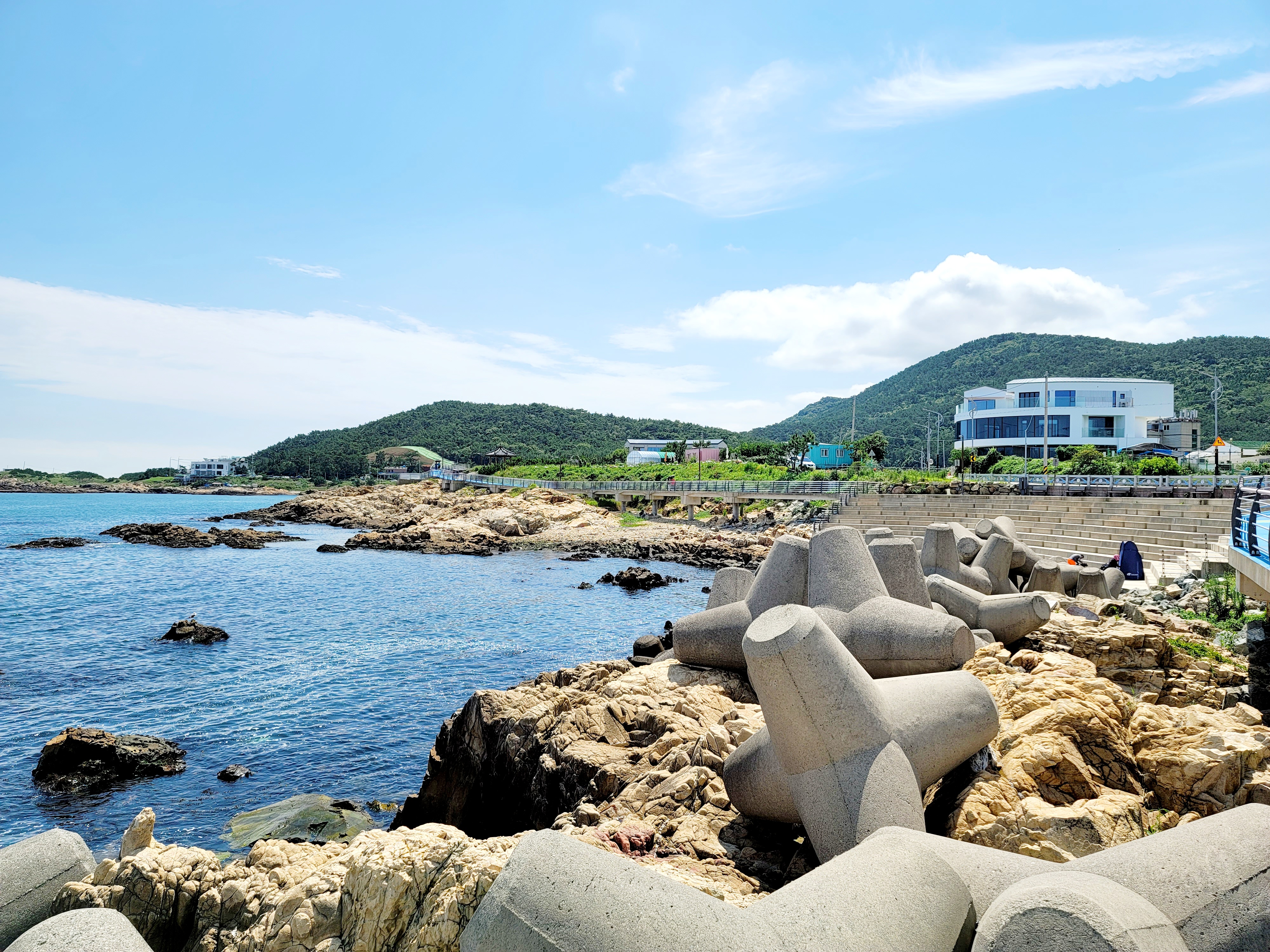 The site is located along a coastal road that offers views of a lighthouse and the blue expanse of the East Sea. It is situated against the backdrop of a quaint village, with notable landmarks like the ‘Jukseong-ri Waeseong’ and ‘Hae-song’ (designated as Busan City Monuments) within a 500 meter radius. The nearby ‘Jukseong Catholic Church’ further enhances the cultural and historical significance of the area.