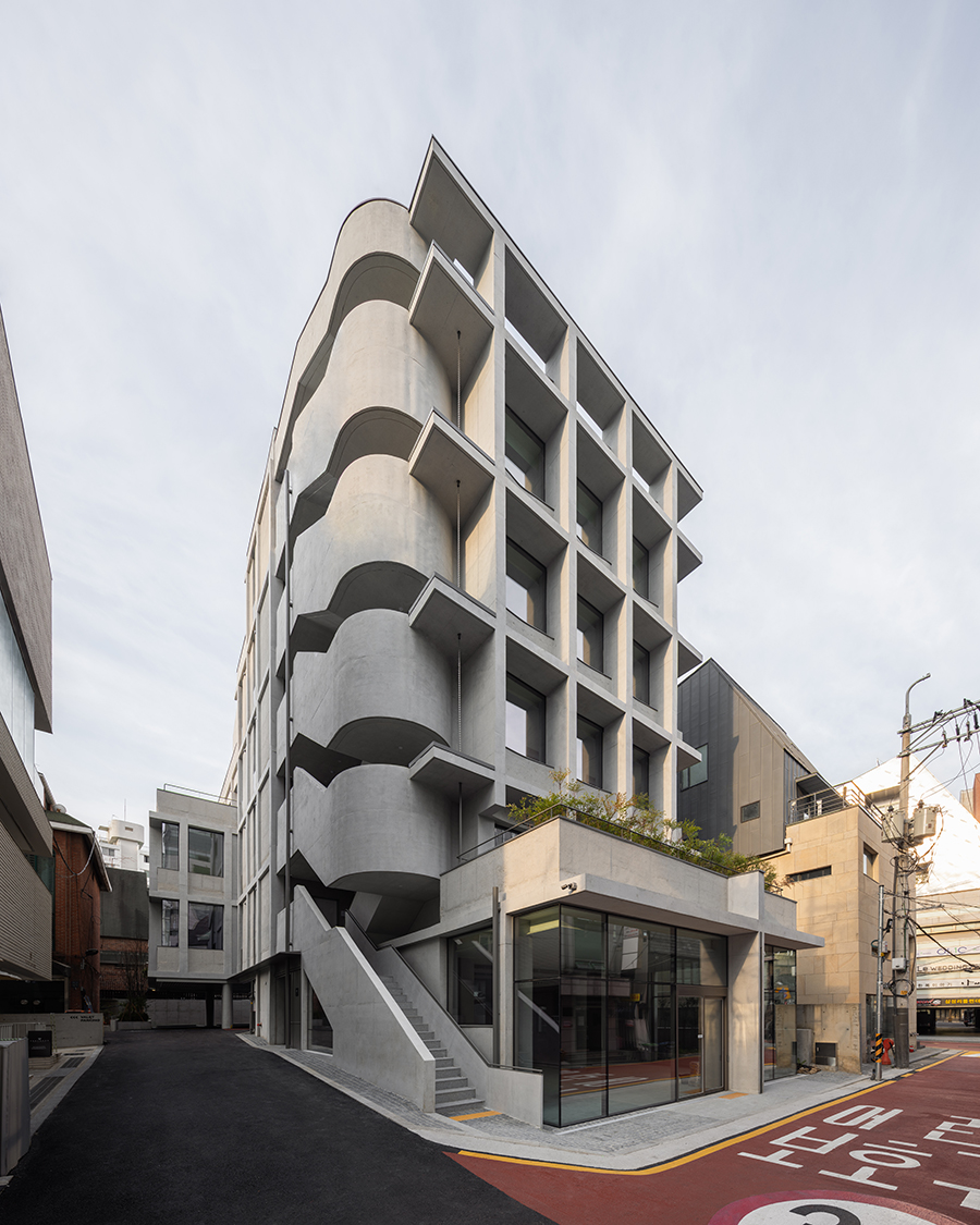 Located near Hakdong Intersection on the southern block of Dosan-daero, "Gray Cheongdam" is positioned at the point where the commercial and office zone transitions into a residential area. With the recent changes in office facilities along the main road, long-established commercial and residential buildings are beginning to transform. "Gray Cheongdam" evolves alongside these large office structures, creating an architectural atmosphere through its form and materiality.
