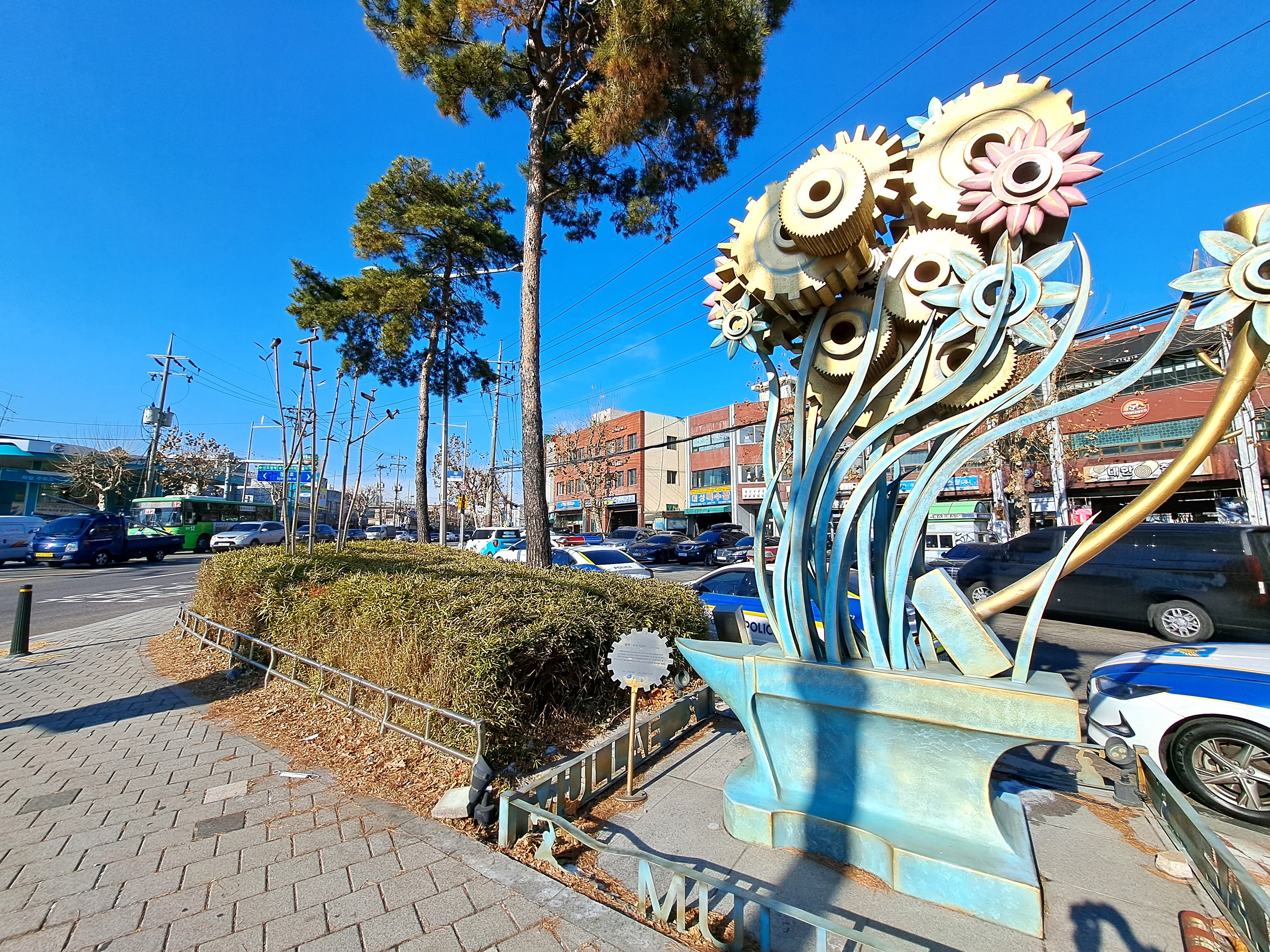 철공소와 예술가의 만남, 무척이나 이질적으로 보인다. 예술가의 진출에 철공소의 첫 반응은 어떠했을까? 문득 궁금해지는 지점이다. 그러나 20여 년 무난한 관계를 유지하며 상호보완적 존재로 공생하고 있음이 곳곳에서 드러난다. 간판이며 벽, 셔터에 그려진 그림들이 그 증거다. 철공소건 예술가건 뭔가를 만들어낸다는 본질은 똑같다. 기계적 기능에 충실한 결과물이냐 창작이냐의 차이만 존재할 뿐이다.