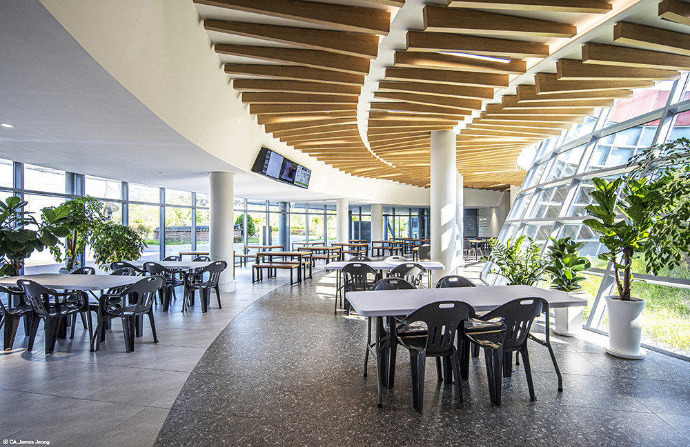 The architectural beauty is unique in that it introduces a design based on the theme of ‘Jeongjung-dong’(Between stay and move), which contains the flow of the surrounding area as well as the communication between nature and history. The flow of the highway surrounding the four sides is symbolized by the dynamic external pattern and the rising roof, and the courtyard is harmoniously planned as a static space by applying traditional elements, so that dynamic and static elements overlap.