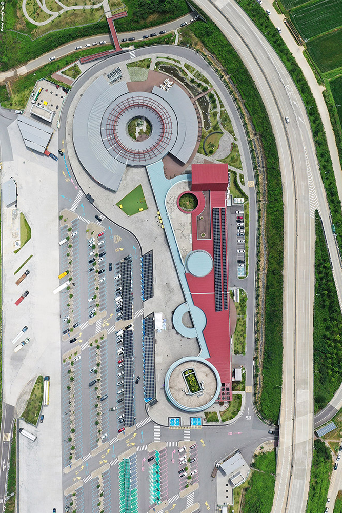 In order to overcome the constraints of two car entrances and two vehicle exits, the zoning plan was clearly defined for each direction and the exit area was arranged to secure a view. A dedicated parking space for large vehicles was planned to separate the route from that of small vehicles, and a circulation route was secured for emergency vehicles and vehicles entering by mistake, giving top priority to safety and convenience. In order to ensure pedestrian safety in the parking lot, a dedicated pedestrian route was secured. In particular, a dedicated boarding and disembarkation area was planned for group bus users to ensure safe and quick movement. The entire facility is connected by an internal route, allowing use in all seasons, and restrooms and convenience facilities were placed in the most convenient locations from the parking lot, giving top priority to user convenience.