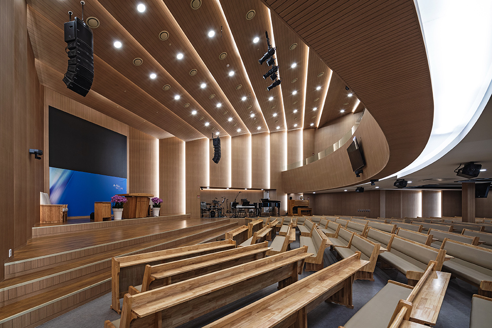 The pastor of the church, who had served as a naval chaplain for many years and retired as a naval colonel, held a deep sense of pride in his naval background. The design of Gimpo Seongin Church, with its white mass and curved side resembling a ship’s bow, unintentionally merged the pastor’s naval identity with the identity of the church. The external decks on each floor and the ship-like curvature reflect both the pastor’s naval history and the church’s spiritual purpose.