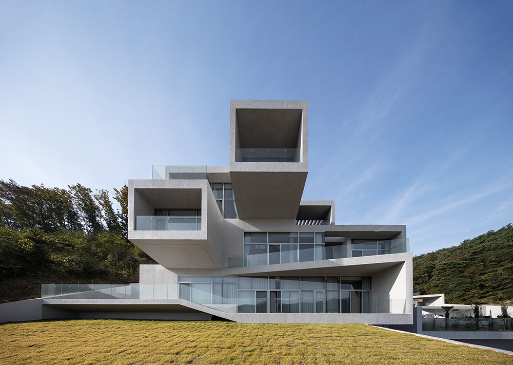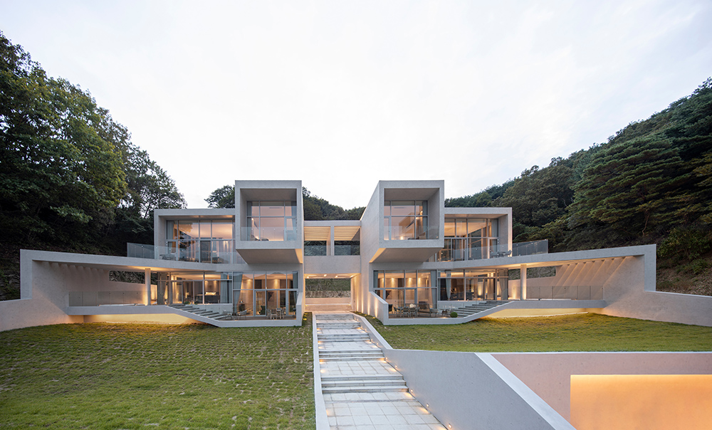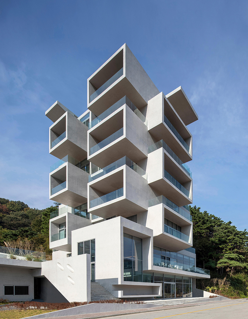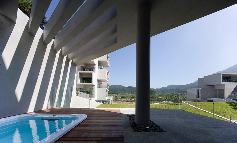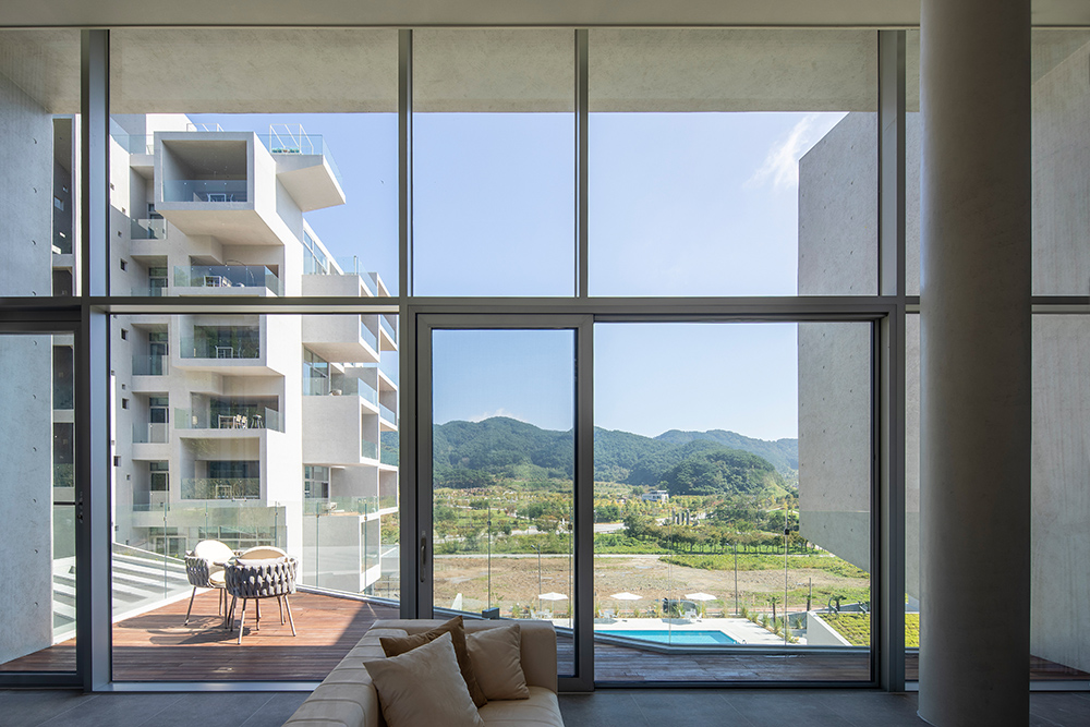 숙박객들의 편의를 도모해 도로면에 인접하게 본동을 배치했고, 동측 골프리조트로 시야를 유도하여 주·야간의 골프장 환경을 주요한 조망점으로 삼았다. 각층은 2개의 유닛을 엇갈리게 조합하고, 캔틸레버 발코니를 이용해 개별 유닛의 프라이버시 확보와 조형적 변화를 꾀했다.