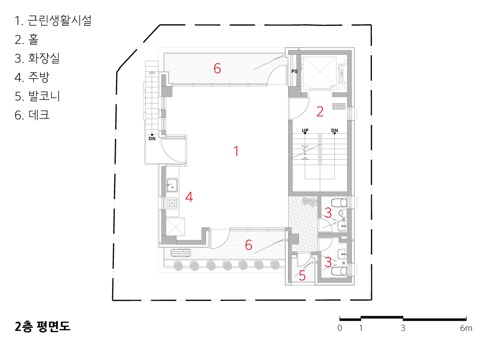 먼저, 상가주택이기에 상가와 주택의 동선을 철저히 분리해 거주공간의 프라이버시와 쾌적함을 유지하는 것과 동시에, 뒷골목에 위치해 있기 때문에 건물의 존재감을 알릴 수 있는 디자인을 하는 것이 계획의 우선이었다.