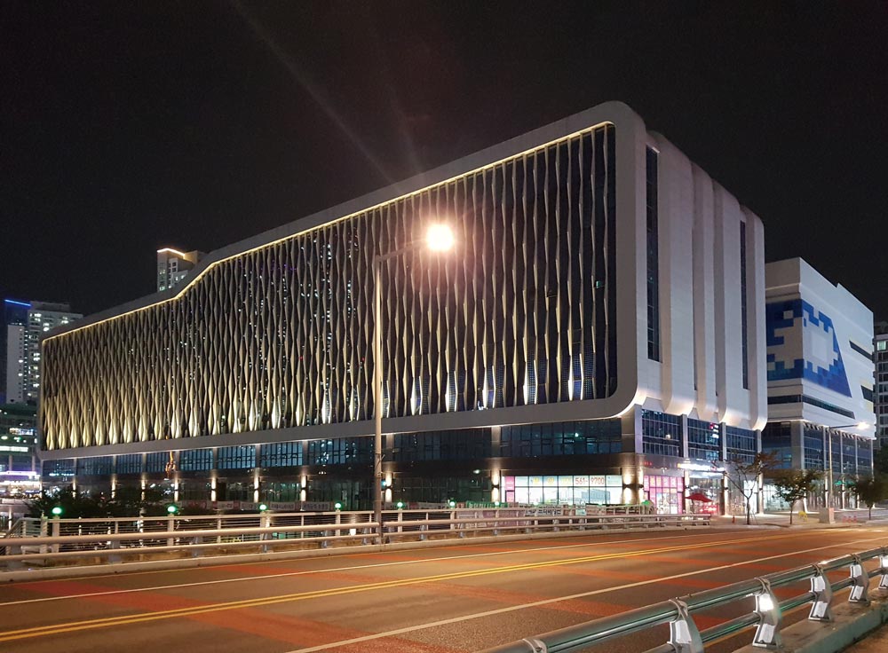The concept of building is 'FLOATING EMERALD', and it expressed an understated beauty with glass pattern that resembles color of water which has a natural flow of an emerald's elegant and bright light, and a splendid mass of the building.