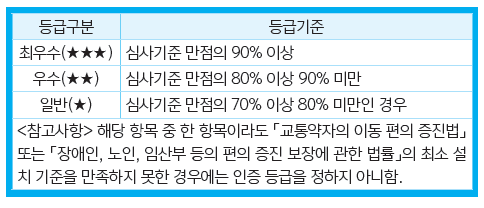 장애인․노인․임산부 등 모든 시설 이용자가 각종 시설물을 보다 편안하고 안전하게 이용할 수 있도록 하기 위해 편의시설의 설치·관리 여부를 평가하여 인증하는 제도로 2008년부터 시행되고 있다.