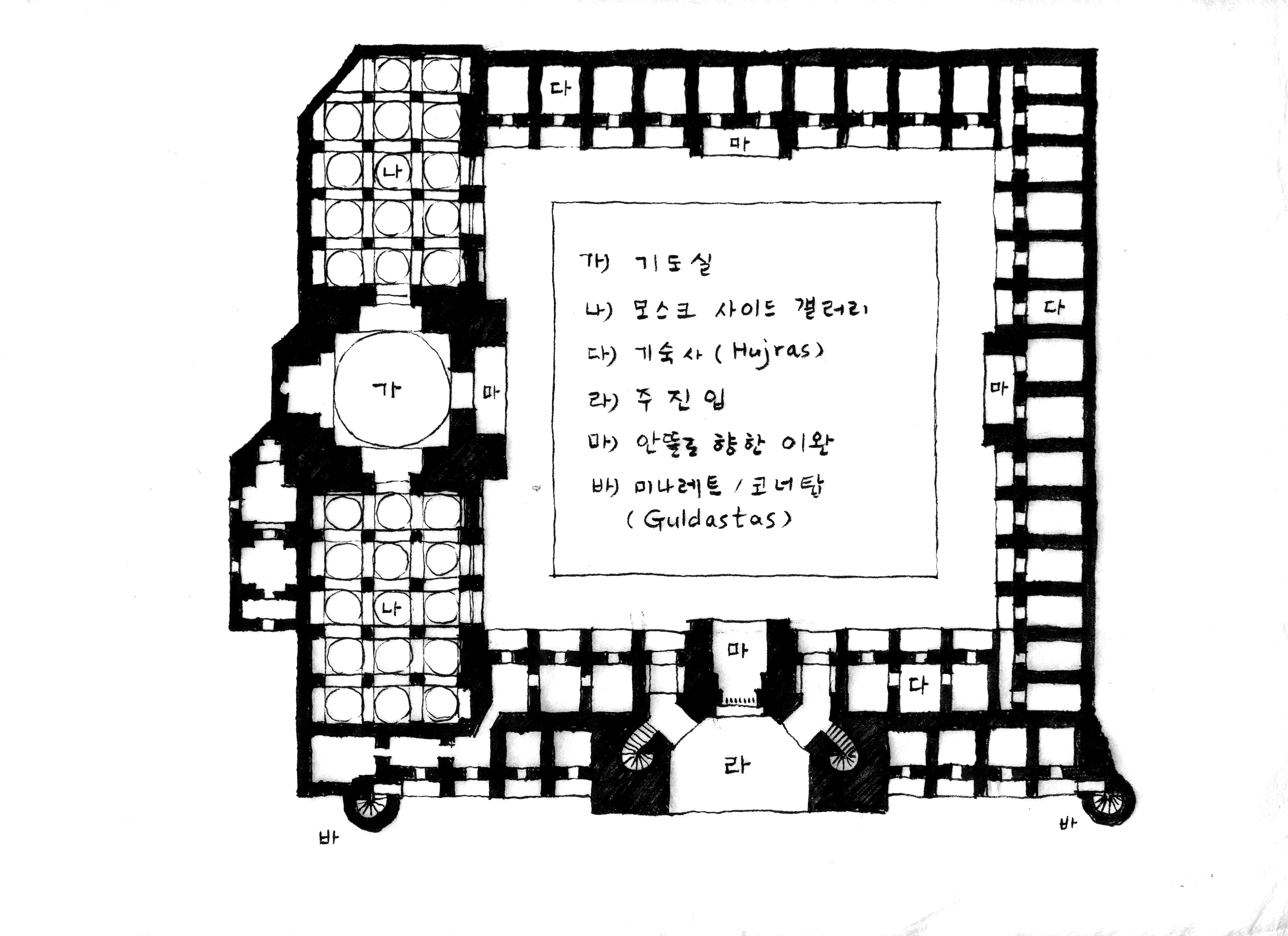 앞서 서술한 것처럼 이슬람 건축에서 예배 공간 (모스크), 교육 및 수행공간 (마드라사), 사후 공간(마우솔레움/영묘)을 각각 독립적으로 설명하는 것은 쉽지 않다. 이는 예배 공간과 교육 공간이 함께 있거나, 교육 공간이 사후 공간이 결합되어 있거나, 혹은 이 모든 들이 하나의 앙상블로 조화롭게 존재하는 경우가 많기 때문이다. 이번 호에서는 레기스탄 광장의 세 개의 마드라사를 중심으로 다룬다. 연재가 끝나기 전 한국의 유교 교육공간이나 불교 교육공간과의 차이점과 유사점을 살펴보는 것도 좋을 것 같다.