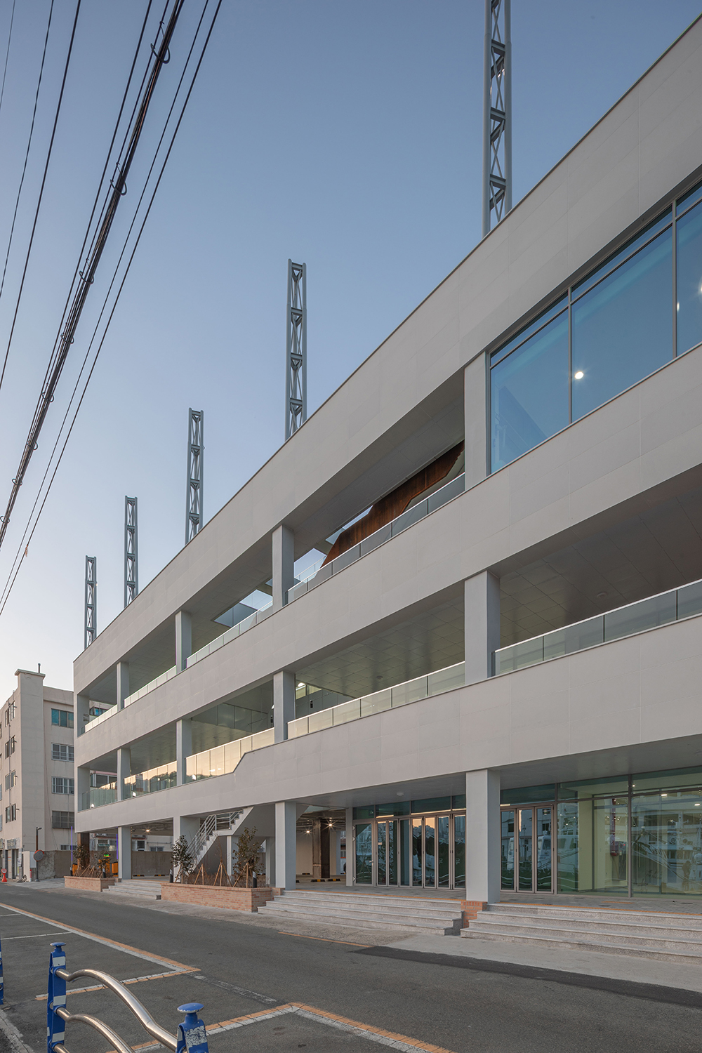 Existing buildings used as Toto bowling alleys, indoor and rooftop golf practice ranges had a closed spatial structure due to their original functions. It was hoped that this closed building would have a relationship with the sea, and that the rooftop, which was used as an outdoor golf practice range, would be used as a shared yard for residents in the city.