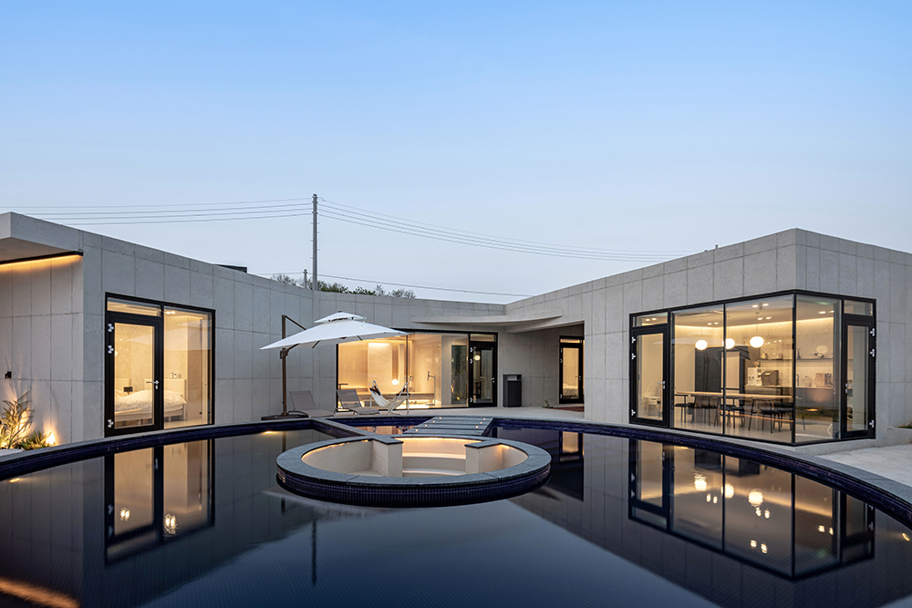 The rest area (yard, swimming pool) is a space that contains life, and it serves as a device to filter the daily rest and the lives of the residents, rather than a thick wall that separates them from each other.