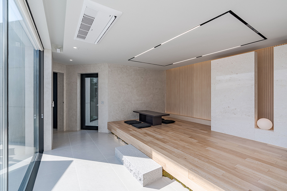 부드럽게 돌아 에워싸는 아크벽이 적당한 이격으로 시선의 권리를 보호하듯, 아늑한 내부 공간에 편안함을 더해 가족의 일상 공간을 잘 품어줄 것이다.인간의 거주를 다시금 이해하는 것……. 기능과 미, 쉘터로의 단순한 공간창출이기보다, 주변 환경과의 유연한 대응으로 진정 행복한 가족공간이 되길 바란다.