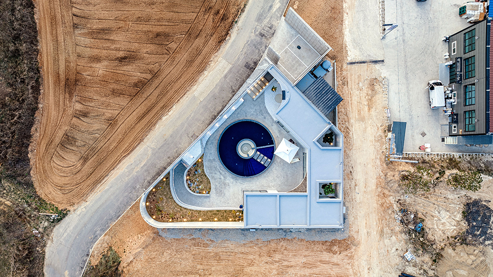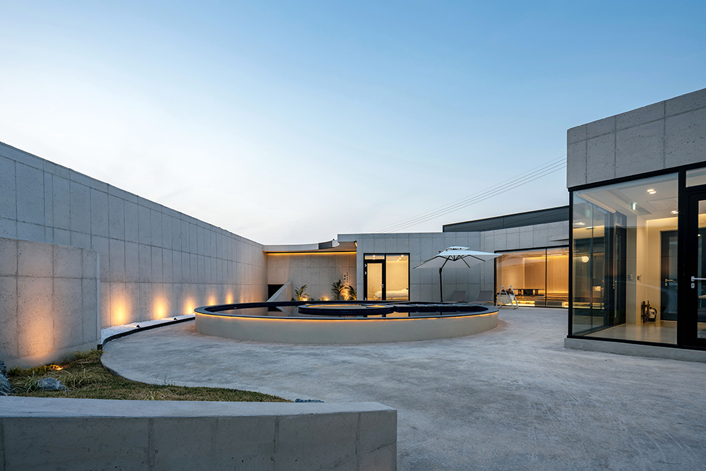 바운더리(Soft Wall)의 경계는 마을의 목가적 풍경과 내부 마당의 휴식 공간(마당, 수영장) 등 삶은 담은 공간으로, 서로를 격리하는 두꺼운 벽이 아닌 일상의 휴식과 주민의 삶을 필터링하는 장치로서의 역할을 한다.