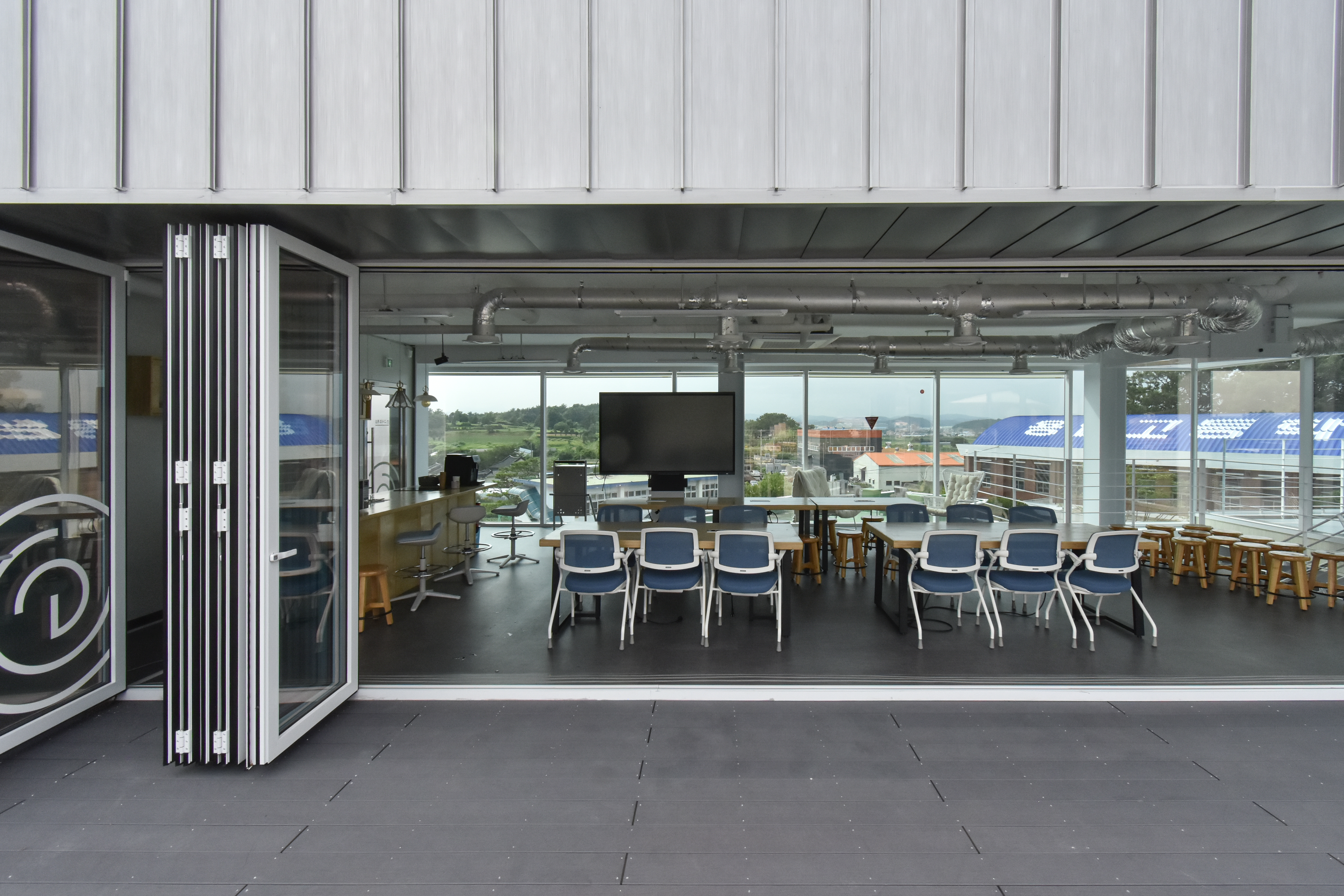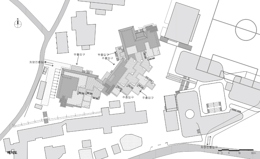 In the plan configuration of the classroom space, rather than simply arranging repetitive classrooms with redundancy or overlap, we chose an improvised, changing, and unpredictable arrangement, allowing students to explore the classroom space by exercising their curiosity and creativity. In particular, when the high school credit system is implemented, various classrooms are needed due to the different number of students and teaching methods for each subject, so movable walls (moving walls) and folding doors (folding doors) were installed to allow the classroom size to be increased or decreased as needed. Additionally, electronic whiteboards were installed in all classrooms, and wireless communication and interactive classes were made possible. And the front and back of the school building were designed to give a completely different feel. Students were encouraged to experience the experience of explorers entering a secret door every day and emerging into another world.