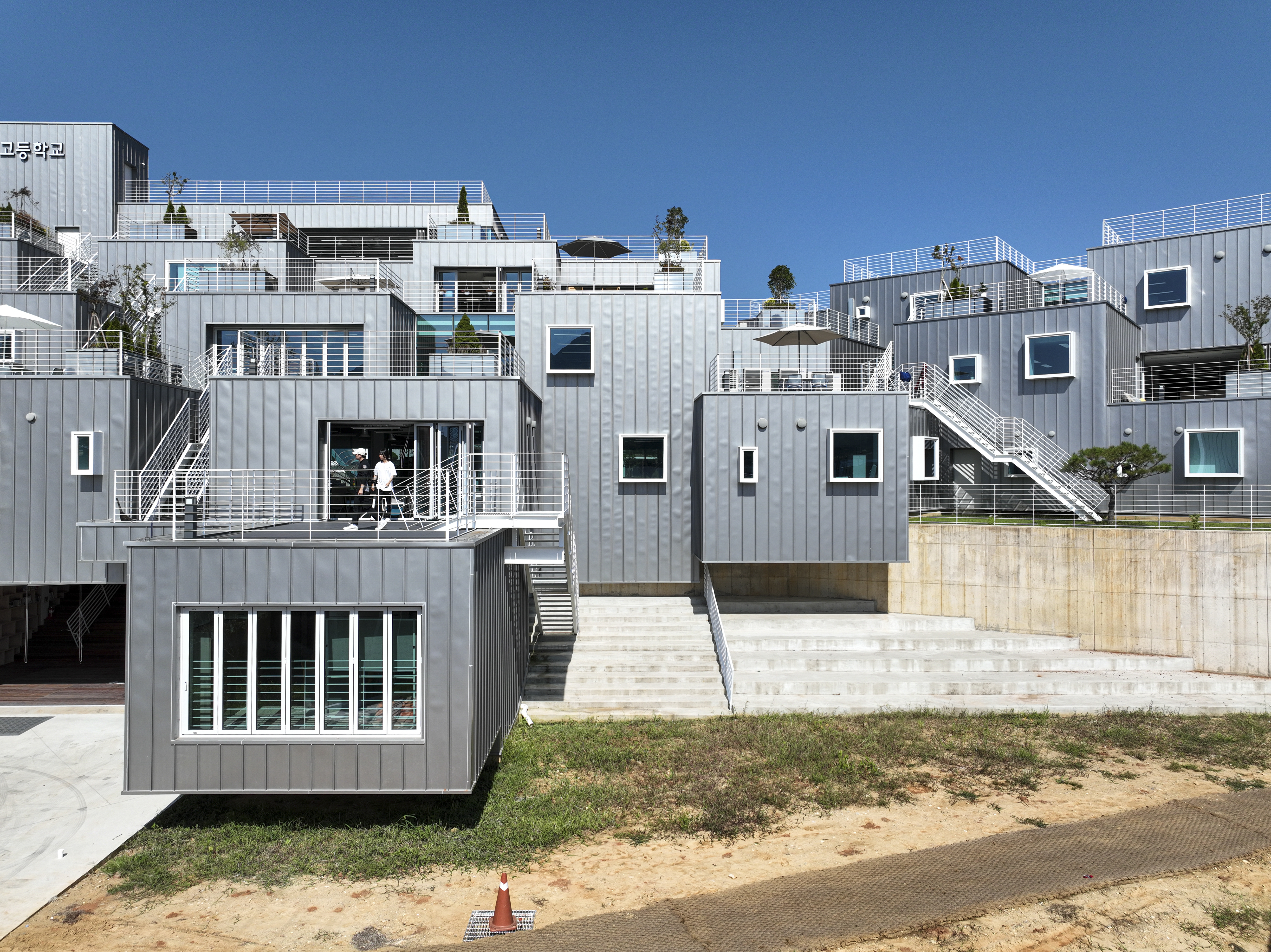 In existing hallway-type schools, students’ movements are vertical and their action radius is also predictable and limited. Restrictions on behavior due to space lead to limitations on thinking. In contrast, Yongnam High School, Floating School, is a geometric and irregular building that is unpredictable, induces direct experience, and is optimized for change and expansion of space. I think this will have a big impact on the changes and challenges of students.