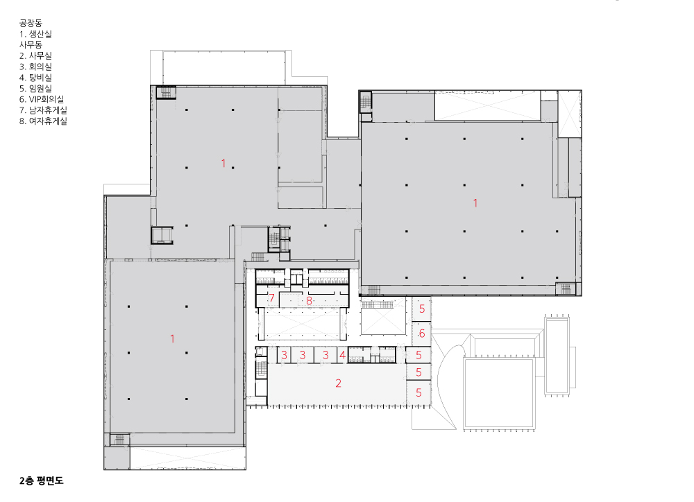 자동화를 염두에 두고 순환 동선을 계획하여 공정 변화에 유연하게 대응할 수 있도록 설계했다. 중심 코어를 활용한 순환식 동선을 통해 향후 생산 라인의 자동화 및 최적화에 맞춰 유연하게 조정할 수 있는 장기적인 확장 가능성을 확보했다.