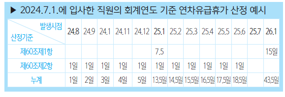 3. 회계연도 기준 연차유급휴가 산정 방법