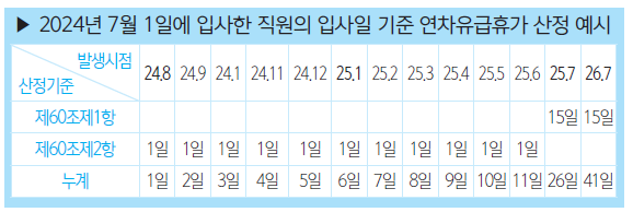 2. 입사일 기준 연차유급휴가 산정 방법