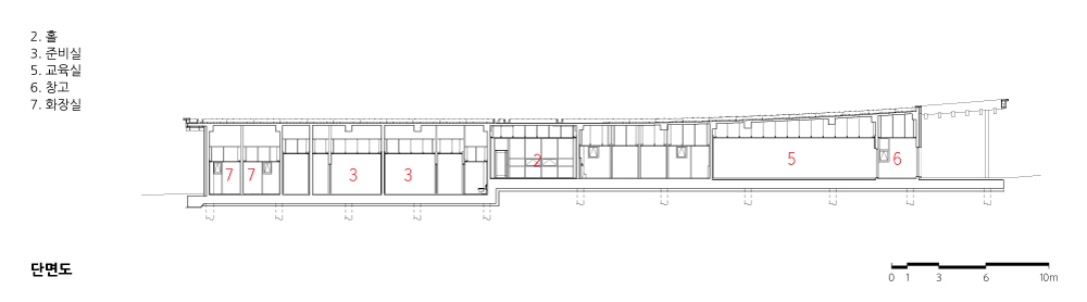 설계공모 당시부터 넉넉하지 않은 부지여건 및 인접 고속도로 소음의 몇 가지 조건들에 반응하며 이상적인 가능성을 탐색하는 것이 우리에게 주어진 과제였다. 부지는 대략 둥근 직삼각형 형태로 프로그램 배치를 신중히 해야 하는 특이점이 있었다. 경사진 기존 보행로와는 부지 레벨을 해결해야 하는 어려움도 있었지만, 무엇보다도 무형의 문화적 가치를 건축물에 담아야 하는 과제에 고민했다. 발주처가 요구한 경제성과 시공성을 고려하면서도 공공건물의 통속적 외관을 지닌 건물이 되지 않기를 바랐다.