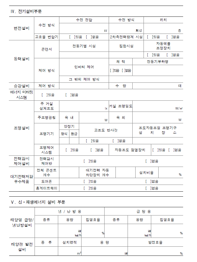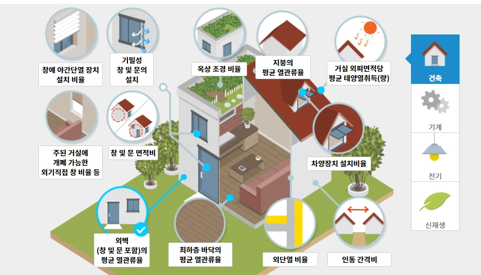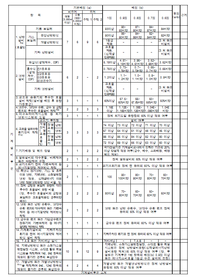 • 시방 : 단열성능, 열원설비 및 에너지절약 관련설비