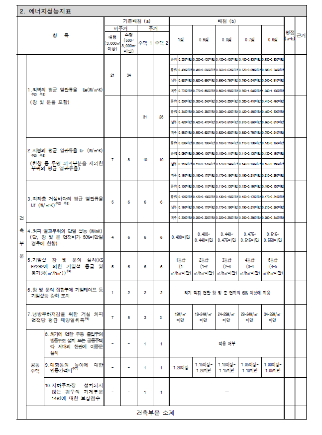 • 건축물의 에너지절약설계기준