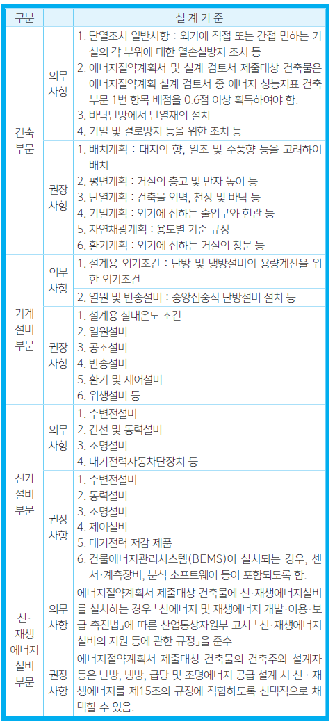 아. 부문별 에너지절약 설계기준