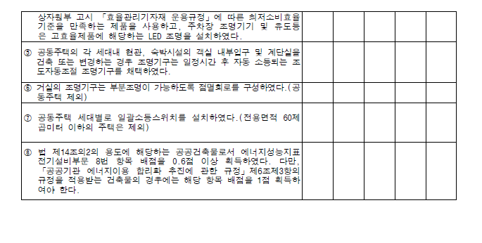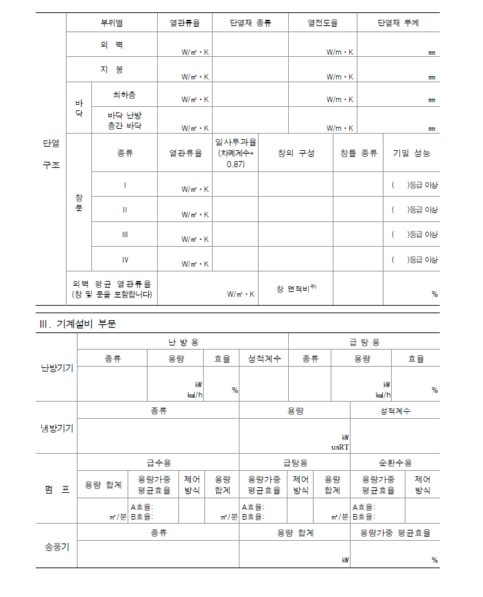 • 시방 : 단열성능, 열원설비 및 에너지절약 관련설비