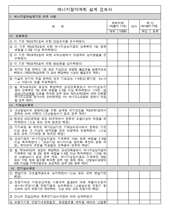 자. 에너지절약계획서 및 설계검토서