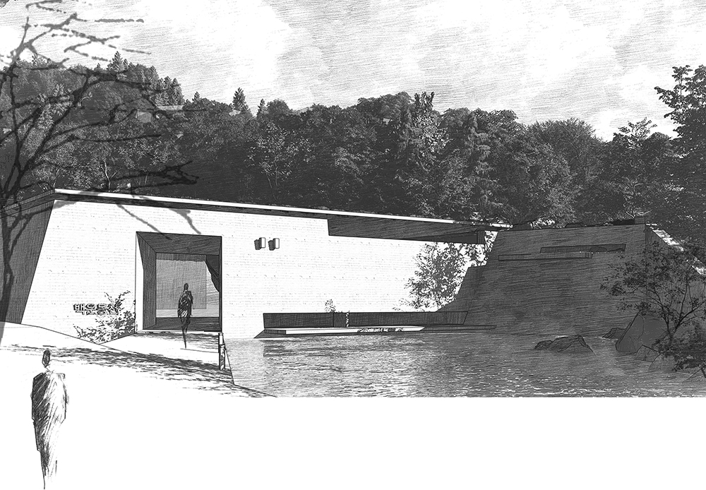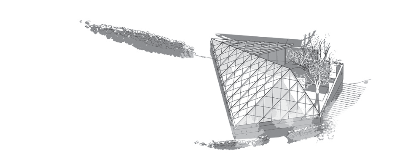 고증을 거쳐 구조를 복원하고 공간을 재현한다. 복원과정 또한 학술적 기록으로 보존된다. 집터는 물을 담는 저류지로서 수공간을 형성한다. 일부분은 투명한 외피를 통해 안과 밖을 풍경으로 겹치게 하고 숲지붕, 하늘지붕을 천장으로 치장하고 암벽과 수벽을 풍경벽으로 인도한다.