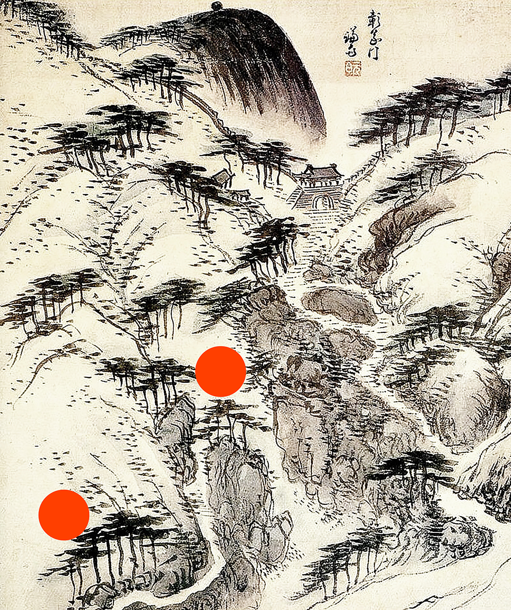 창의문도 _ 겸재 정선 ① 백운장 집터 ② 자하문 터널