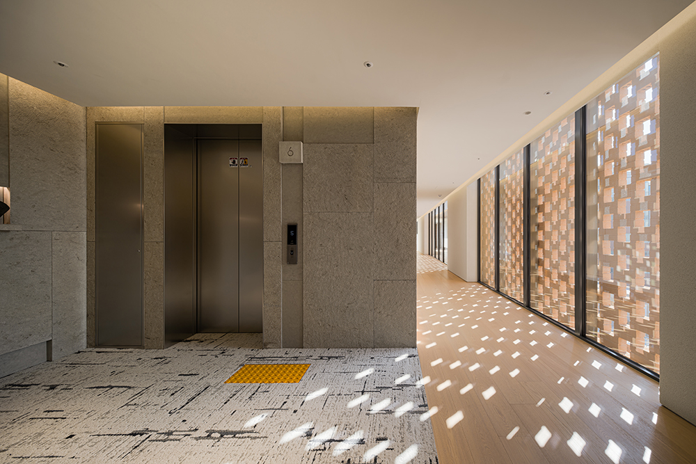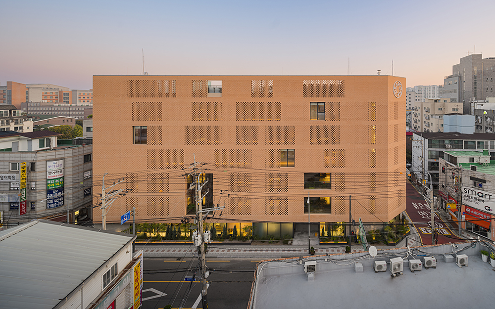This concept also influenced the façade design. Bricks, a material commonly associated with the idea of “home,” were used to create a curtain-like effect with light streaming through. A two-layer “Yeongrong” bricklaying technique was employed, while a combination of “Deryeo” bricklaying and traditional patterns was used for a cohesive look. These design choices softened the visual impact of the 52-meter-long façade on the street environment. Additionally, the use of a curtain wall on the first floor, excluding the elevator and stairwell areas, ensured that the pedestrian experience was neither oppressive nor monotonous.