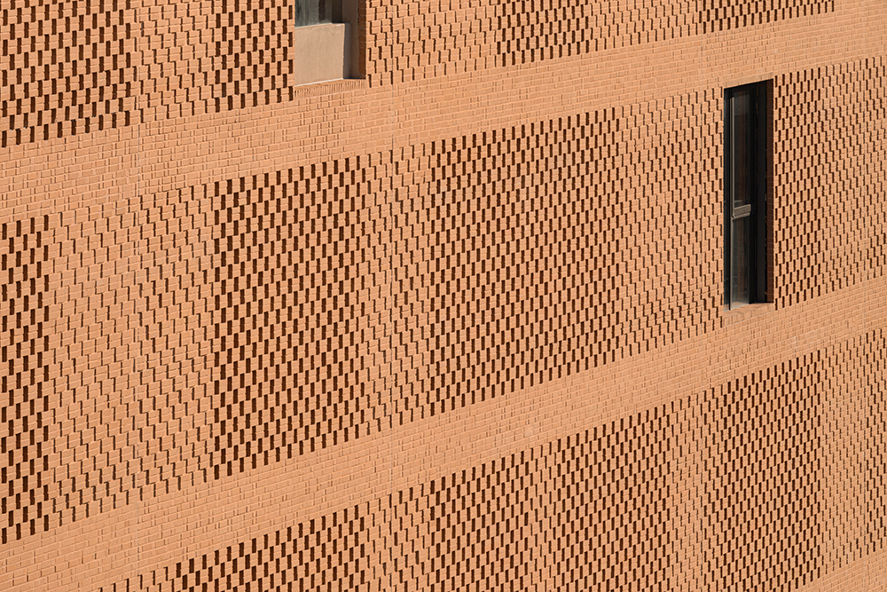 이러한 입면의 비워진 공간과 다양한 벽돌쌓기 패턴의 활용은 52미터의 입면이 가로환경에 주는 위압감을 어느 정도 완화시켰고, 엘리베이터와 계단실을 제외한 1층의 커튼월 입면은 보행환경을 답답하거나 단조롭지 않도록 했다.<사진 8>