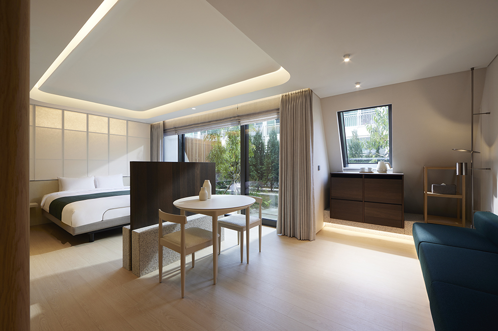 While postpartum care centers typically focus on providing individual services in limited spaces, this project adopted the concept of a “vertical village.” This approach aims to provide mothers with an experience reminiscent of visiting a resort village after leaving the hospital. As the saying goes, “It takes a village to raise a child.” A village has homes, neighbors, parks, and community spaces that care for the physical and emotional well-being of mothers and their children. Within this building, walking paths and rest areas are strategically placed to encourage natural interactions and provide opportunities for relaxation and recharging under soft, filtered sunlight.