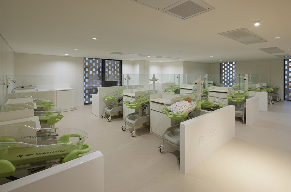 The site, previously used as an above-ground parking lot, is a long and narrow plot oriented east to west along a 12-meter-wide road on the south side and adjacent to an apartment complex on the north. This unique layout made the placement of maternity rooms, parking spaces, and evacuation routes critical design issues.