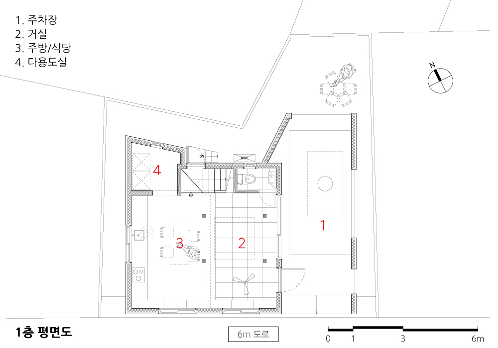 건축주의 요구사항은 단순했다. 2층에서 3층 규모의 단독주택, 방은 3개 정도, 차가 비를 맞지 않았으면 하고, 형태가 단순해도 흥미로운 집을 원했다. 건축주가 요청했던 것 중에 귀에 들어오는 몇 가지가 있었다.
