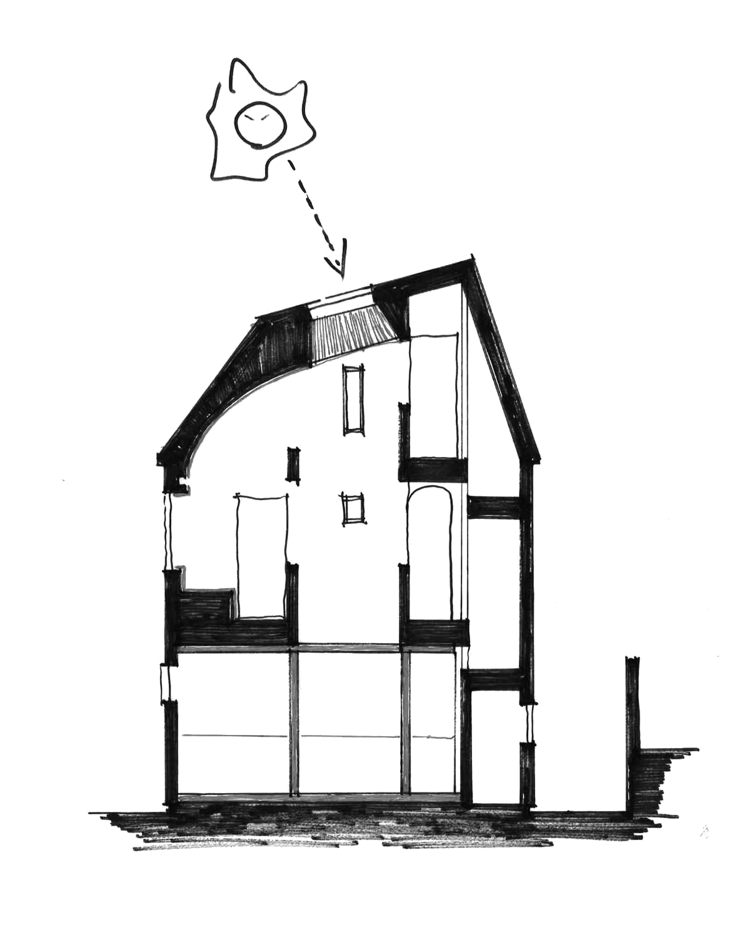 건축주의 요구사항은 단순했다. 2층에서 3층 규모의 단독주택, 방은 3개 정도, 차가 비를 맞지 않았으면 하고, 형태가 단순해도 흥미로운 집을 원했다. 건축주가 요청했던 것 중에 귀에 들어오는 몇 가지가 있었다.