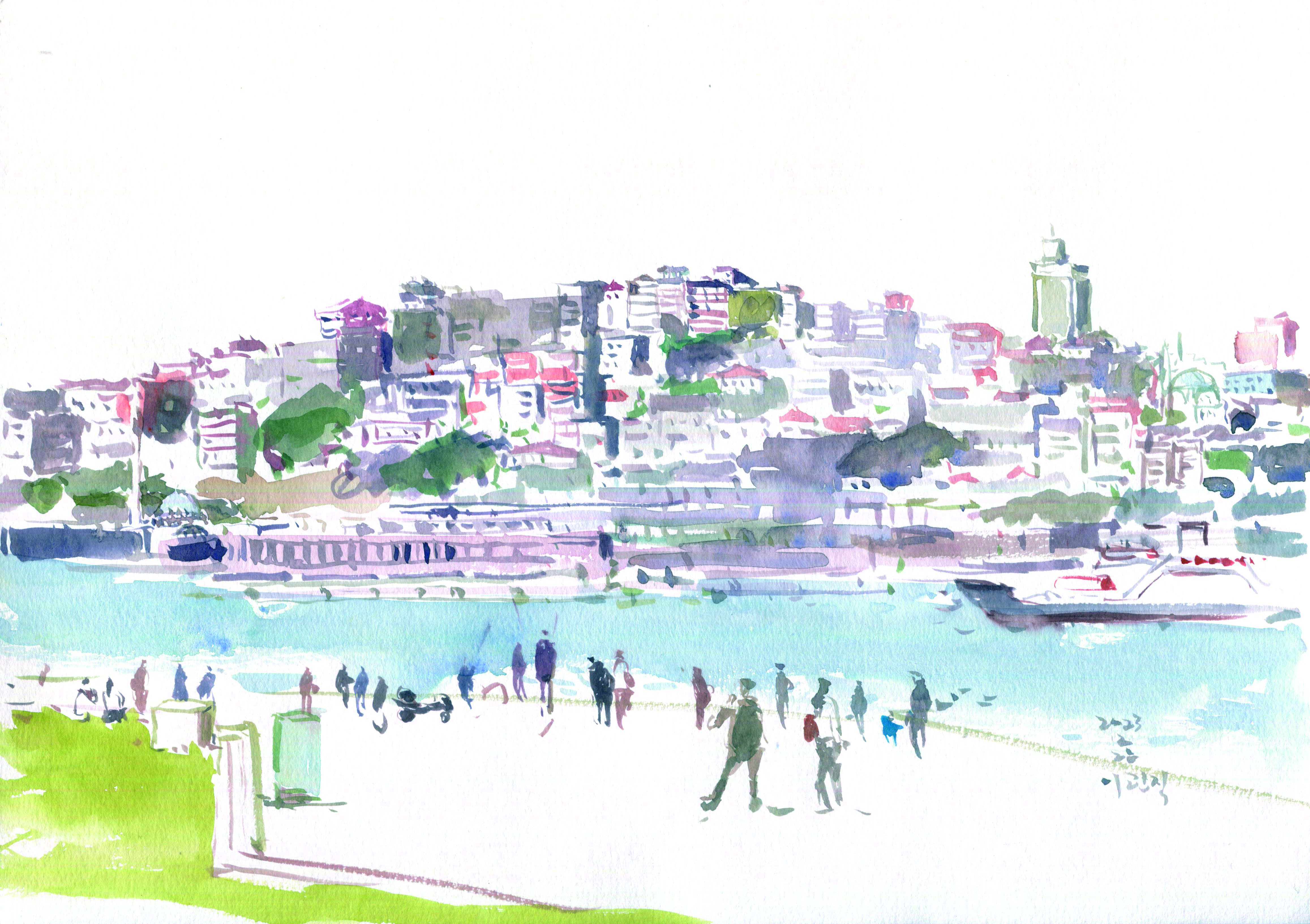 이스탄불을 걷는다. 아야소피와 블루모스크 부근, 비치에 가기 전에 잠시 조용한 카페에 자리를 잡았다. 수천 년 유적들 주변에 3, 4층의 집들로 이루어진 휘어지고 경사진 골목 풍경도 아름답다. 히사르(Hisar)라는 카페에 앉아 골목 풍경을 본다. 붉은 자주색 벽의 집이 인상적이다. 터키식 커피를 마신다. 단맛이 가미된 에스프레소 같다. 밖에 있는 테이블로 나와 앉았다. 마르마라해 방향에서 비추는 햇빛으로 굴뚝 그림자가 대각선으로 지붕에 뻗어 있다. 바다 쪽으로 걸었다. 골목은 수백 년 되었을 울툴불퉁 피쉬스케일 문양 사괴석 포장이다. 사라이부르누 공원(iBB Sarayburnu Park)에 이르렀다. 앞의 바다가 골든혼과 보르포루스해협이 마르마라해와 만나는 삼각지점이다. 낚시꾼들이 해변에 모여있다. 녹색 잔디로 잘 가꾸어진 너른 공원에서 이젤을 세우고 바다 건너 신시가지를 바라보며 그림을 그린다. 친절하고 활기에 찬 사람들, 여행자의 기분도 좋다.
