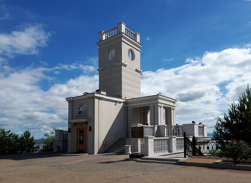 광장의 중앙부에 있는 건물은 라디오 방송국인데 그 뒤로 아무르(Amur·黑龍江)강이 흐르 고 있다. 방송국 옆면에는 하바로프 출신들의 훈장 탑이 우뚝 솟아 있다. 영원의 불꽃 기념 탑 맞은편에 ‘구세주 사원’ 프라오브라젠스키 사원이 내려 쪼이는 태양 아래 황금색 돔이 빛나는 그리스 러시아 정교 사원의 아름다운 자태를 뽐내고 있다. 사원의 돔이 5개 인데 중 앙의 큰 것은 신을 나타내고 작은 돔은 마태, 루가 등 성인을 나타낸다고 한다.
