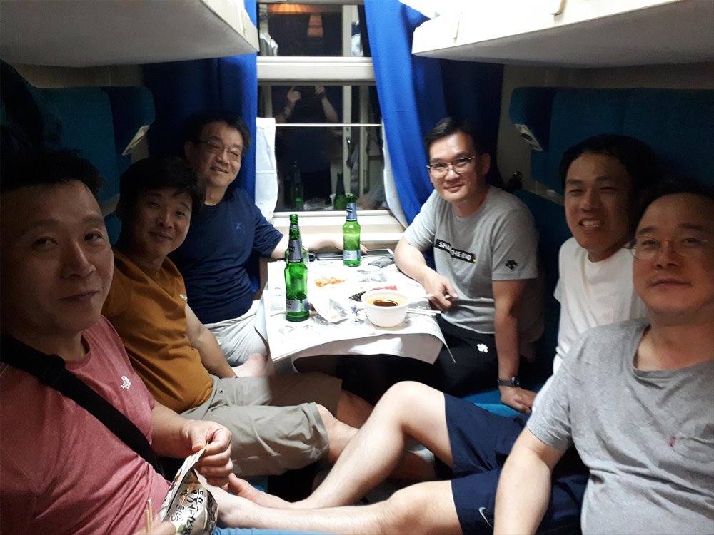 횡단철도 침실 1칸은 4인 1실이며 공안원은 사법권이 있어 권총을 가지고 있다. 공안원은 ‘ 주의하라’는 말과 ‘중간 역에서 정차하니 내려서는 절대 안 된다’는 말을 강조했다. 아래층 은 창 쪽에 테이블이 고정되어 있고 출입문 양옆으로 의자가 있는데 출입 문 쪽의 레버를 누르면 등반이가 내려오면서 침대가 된다. 이미 시트와 이불과 베개가 모두 정갈히 비치되어 있었다. 이층으로 올라가려면 출입문 양측의 레버를 누르면 작은 사다리가 툭 튀어 나온다.